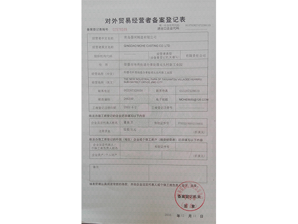 • 對外貿(mào)易經(jīng)營者備案登記表